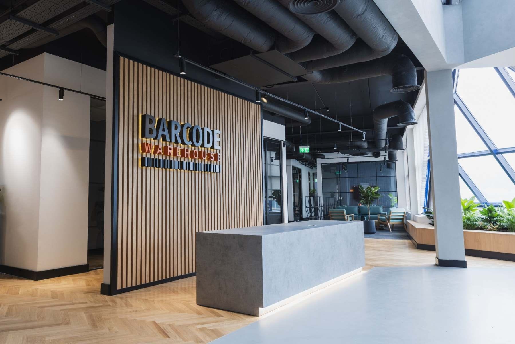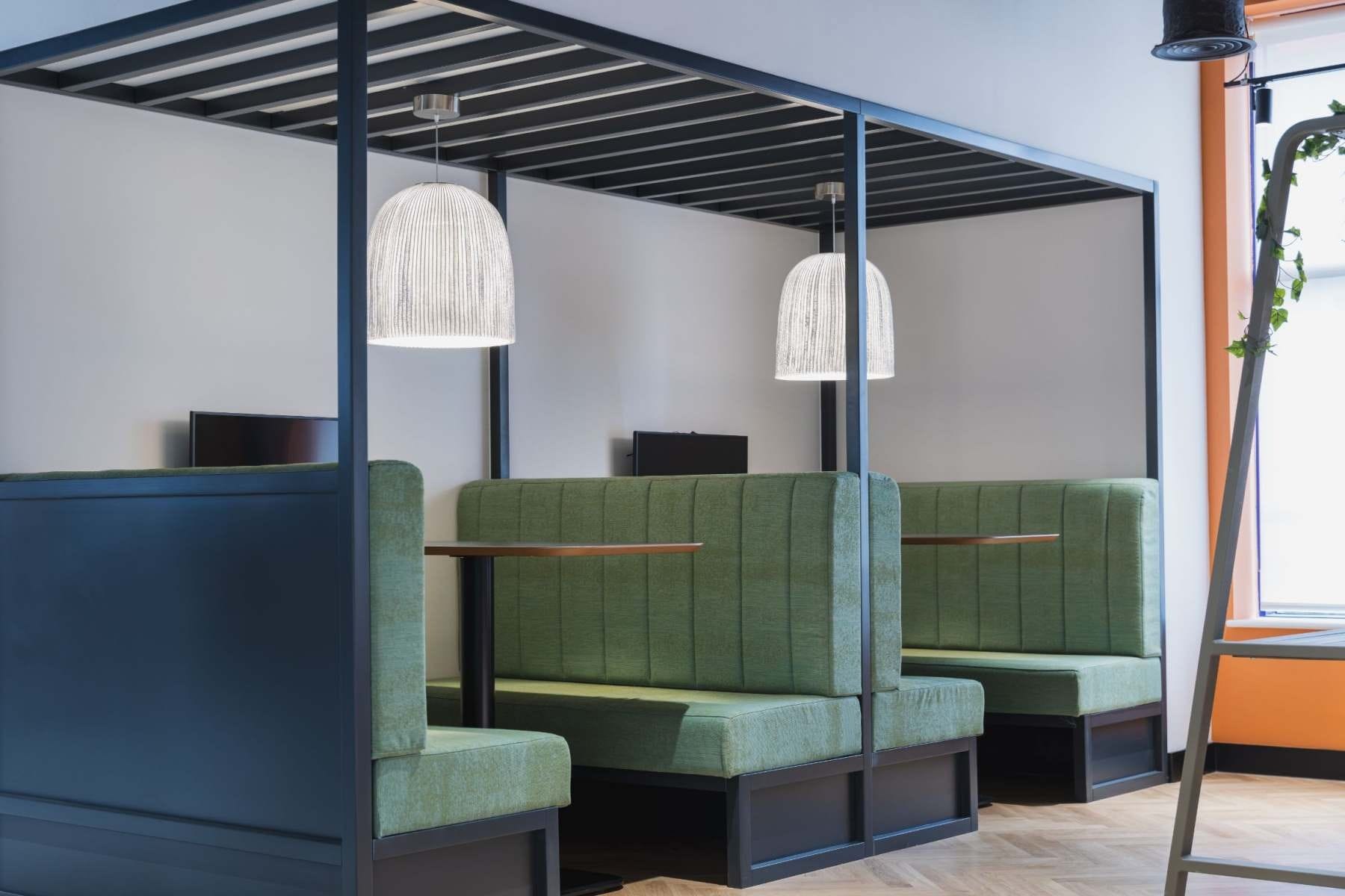 Suspended linear LED lighting, providing efficient and stylish illumination across workspaces.