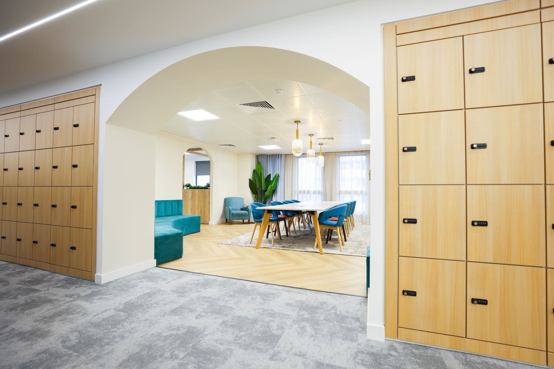 Fitting of various feature pendant lights, adding character and style to key areas of the space.