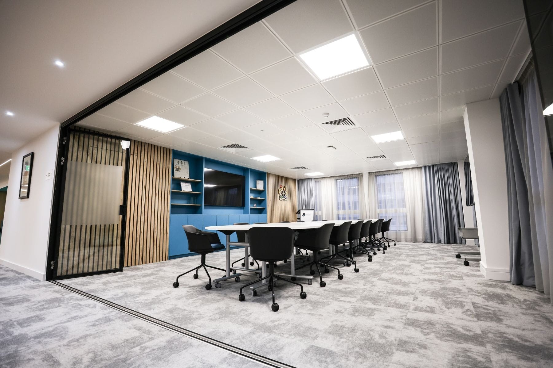 Working in collaboration with Rhino Interiors, we completed a series of electrical modifications to support a revised workspace layout and enhanced interior design features.